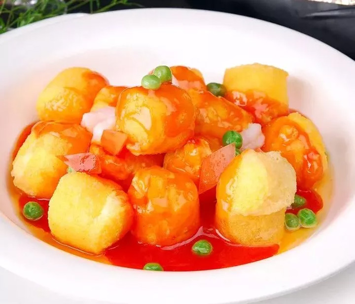 水晶豆腐是呂梁市特有的一種地方小吃,原料為土豆。為宴請親朋好友、紅白喜事必不可少的一道菜品。該小吃從外觀看,色澤晶瑩,形狀類似豆腐片。味道鮮美,滑而不膩。