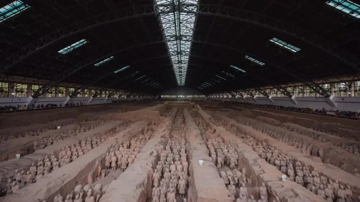 秦始皇帝陵博物院被譽為世界第八大奇跡之一,坐西向東,三坑呈品字形排列,占地面積達2萬多平方公尺,內有和真人、真馬大小相似的陶俑、陶馬近8000件。走進兵馬俑展廳,你一定會為兩千年前,這支地下大軍驚歎不已。