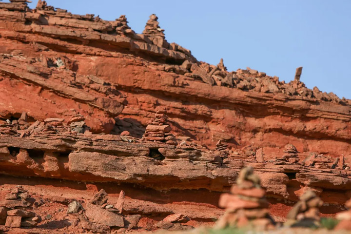 山體流光溢色多彩變化,如彩色經幡環繞