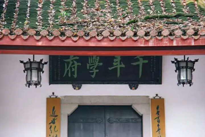 信步校園,就在一條不起眼的小徑之旁,一個古樸的院落突兀地進入視野,頭門門楣上只有四個大字“千年學府”。