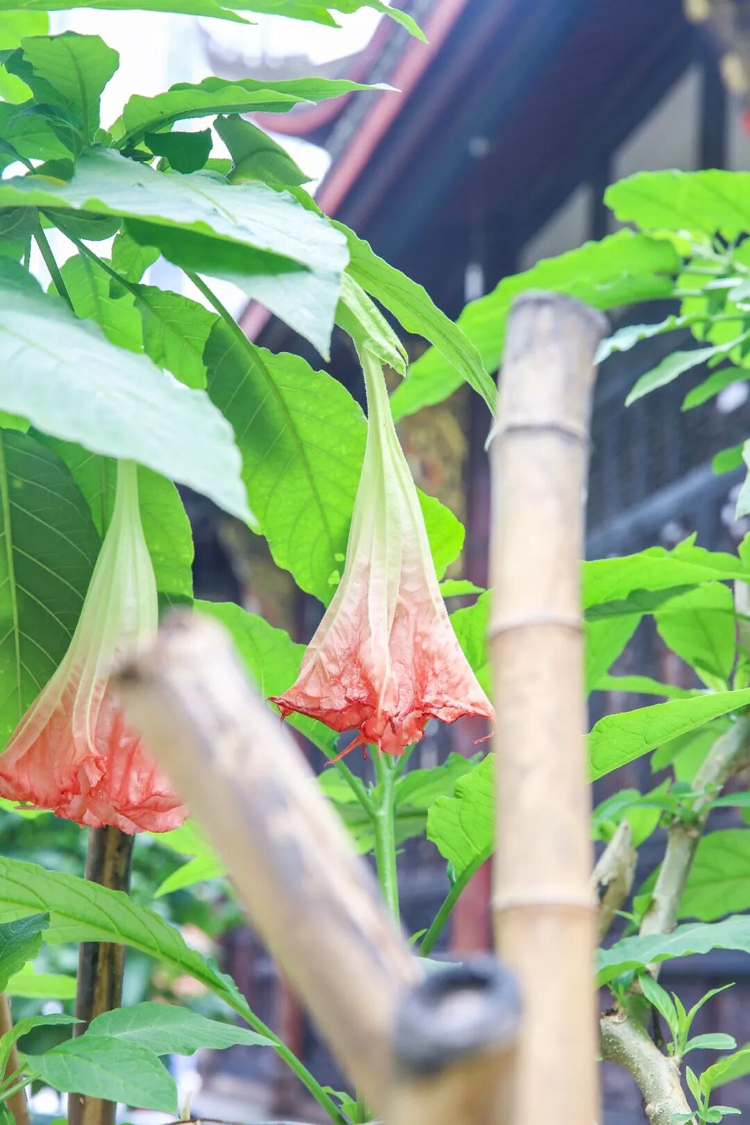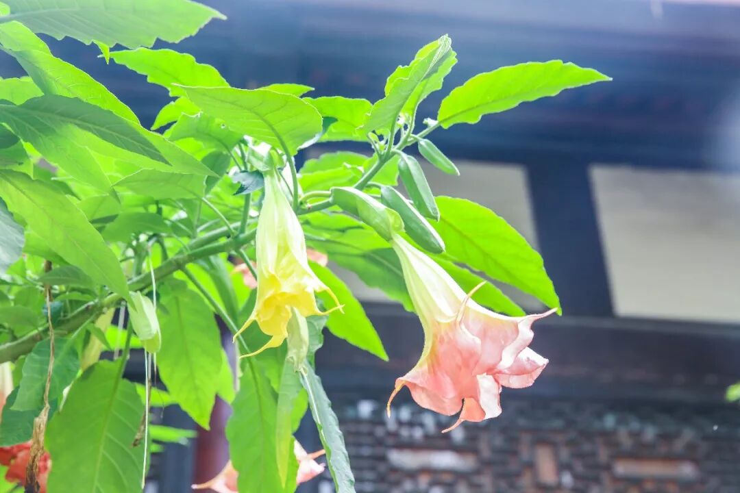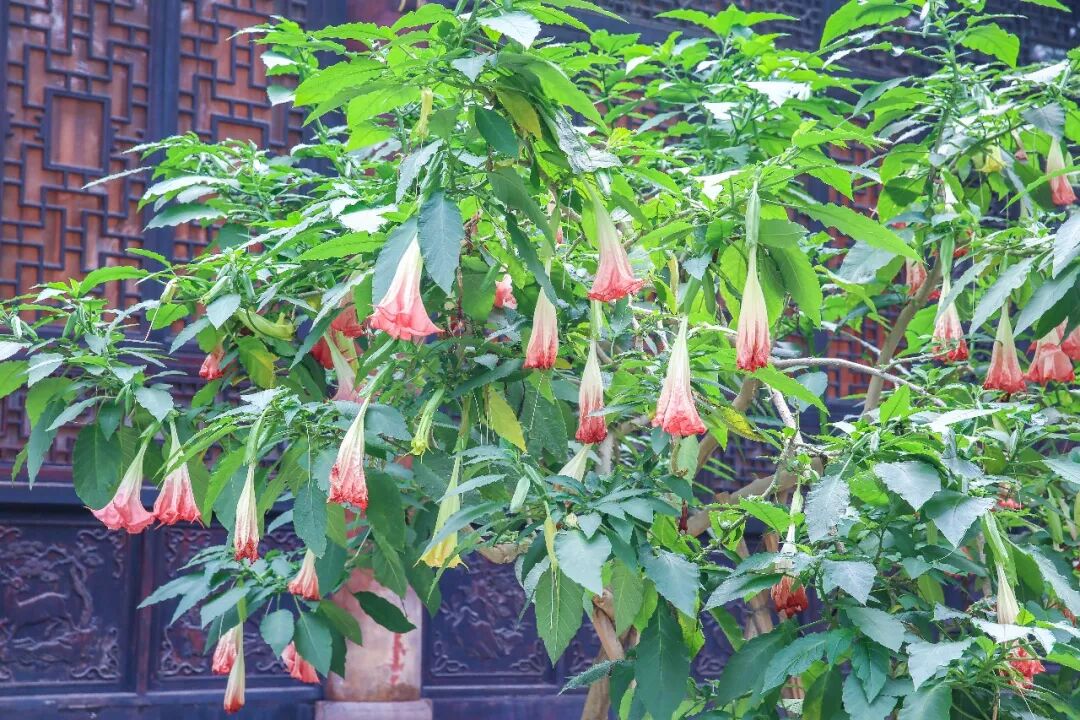 這種自帶奇幻色彩的花,大慈寺有4棵,大的已經種了13年,小的也有5年。粉色的碩大花朵垂掛著,不認識的可能會誤認為是喇叭花或者南瓜花什麼的。