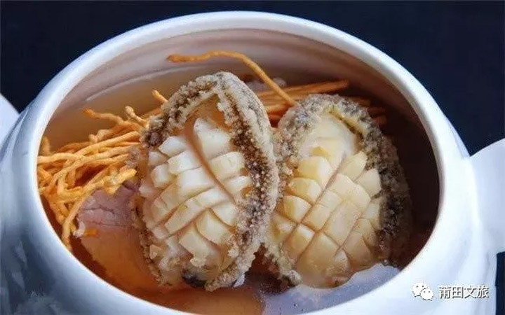南日鮑魚是南日海域特產,採用南日島自己培育的苗種,以南日出產的新鮮海帶、紫菜作為餌料,鮑魚體肥殼豔,鮑肉細嫩,味道鮮美獨特,富含蛋白質,接近天生的綠色食品而享譽天下,素有“鮑”打天下的美名。與莆田本土番鴨一起燉尤為一絕!鮑肉的肥嫩甘鮮、鴨肉的鮮嫩清香,湯汁清而不淡,補而不燥,這醇厚的口感簡直讓人一本滿足!
