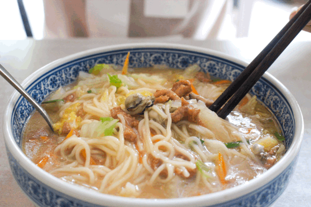 米粉口感細膩,一燙即熟,便於攜帶,煮、炒、炸皆可,尤其是炒米粉!是以豆漿為湯,燒開後放入興化米粉,翻炒裝盤,細滑柔韌的口感醬香十足,出奇驚豔,這絕對是獨一無二的!
