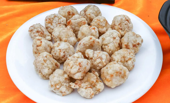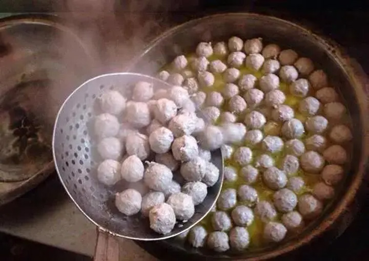 鬆口人家家都有炸肉丸,這是豬肉加薯粉合成,油炸好後,一個個圓滾滾,象徵著團團圓圓之意。