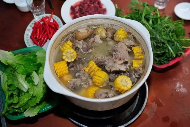 產自定安本地的黑豬肉,品質優良,肉質鮮美,深受食客們的喜愛。選用正宗定安黑豬骨,加入適量調料,經過幾個小時的小火慢燉,便得到原汁原味的黑豬骨湯,再配以新鮮的蔬菜,清新去膩的效果更佳!骨湯火鍋湯鮮而不油,清淡營養,鮮美可口,給人以獨特的味覺體驗。