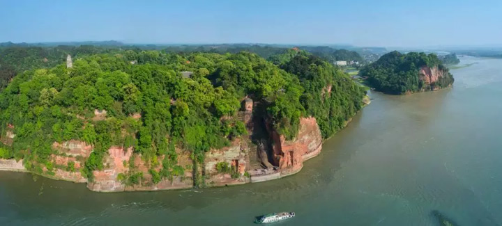 在岷江、大渡河、青衣江的“會師”處,樂山大佛頭與山齊、足踏大江、莊嚴雄偉。