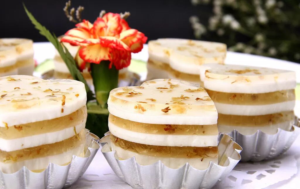 咸寧市咸安區桂花糕產自聞名全國的桂花之鄉——湖北咸寧,桂花糕創製於明朝末期,糕質細軟滋潤、色澤潔白,具有濃郁的桂花清香,入口化渣,口味清香。