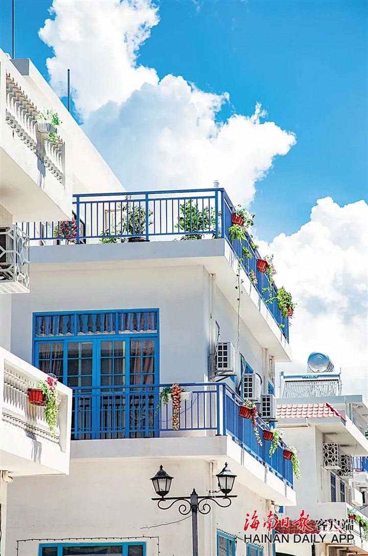 距離天涯海角景區不遠的馬嶺社區,民房被粉刷成藍白色,白色的牆體、藍色的門窗,屋前的三角梅開得鮮艶。這裏的街巷,走到盡頭便是一望無垠的大海,海風迎面吹來,讓人神清氣爽。穿行在這裏的小巷,每一個轉角會遇到不一樣的風景,像是走進了一個夢幻的藍白世界。
