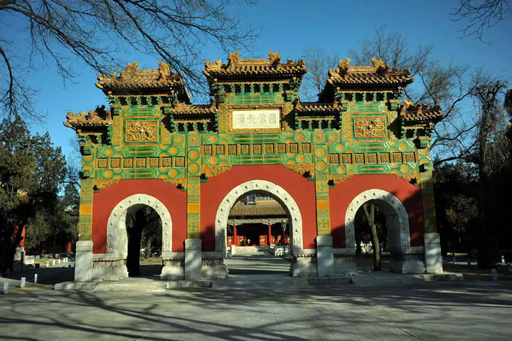 國子監內的琉璃牌坊建於清乾隆四十八年(1783年),是唯一一座專門爲教育而設立的牌坊,是古代崇文重教的象徵。