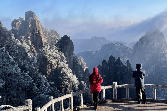 震撼美景!黃山出現霧凇+雲海景觀 來源:安徽文旅 清晨,黃山風景區氣溫降至零下10度。始信峰、光明頂、玉屏樓等景點出現大面積霧凇景觀,整個景區仿佛成了一個晶瑩剔透的琉璃世界。 霧凇,俗稱冰花、樹掛等,是低溫時空氣中水汽直接凝華,或過冷霧滴直接凍結在物體上的乳白色冰晶沉積物,是非常難得的自然奇觀。在藍天的掩映下,大片的霧凇光彩照人、閃耀生輝,遠處還有雲海... 2023.12.19
