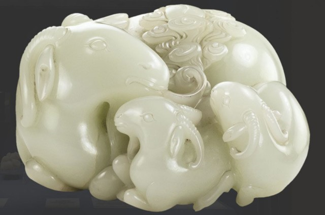 來源:樂遊天津 今天,邀請大家共同欣賞天博最具“愛意”的文物~ 白玉三羊清 高7.7、寬13.4公分 和闐白玉。三羊相依而臥,大羊口吐9朵祥雲及陰陽魚,兩隻小羊甜蜜依偎在大羊母親的懷抱中,神態平和自然,溫順憨厚。“三羊”即為“三陽”,寓意冬去春來,萬物...