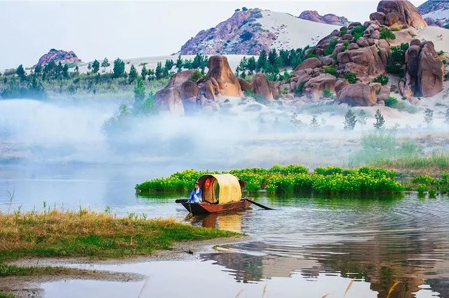 來源:內蒙古文旅資訊 淡淡疏離的薄煙籠罩在沙湖的上空,一簇簇油菜花就像未經裝束的少女,婷婷玉立紮根在河心。淡墨色的天空與朱砂岩石參差暈染在一起,泛著絲絲漣漪的湖水輕輕蕩漾著。一隻帶有憂傷的烏篷船漫無目的地漂在湖面……這並不是江南,而是位於赤峰市翁牛特旗的玉龍沙湖國際文化旅遊休閒度假區。 玉龍沙湖位於...