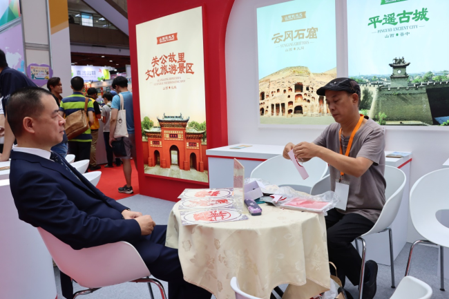山西歷史文化底蘊深厚,人文藝術燦爛獨特。 旅展現場,山西晉劇表演藝術家武凌雲、程利恆、王勝軍以一曲經典的晉劇曲目《千秋關聖》表演驚艷全場,引得台下觀眾陣陣歡呼。 山西省青年民歌手杜倩倩,山西民間非遺剪紙傳承人王振華等均用自己的才藝向觀者傳遞了山西獨特人文魅力,吸引眾多參觀者駐足。