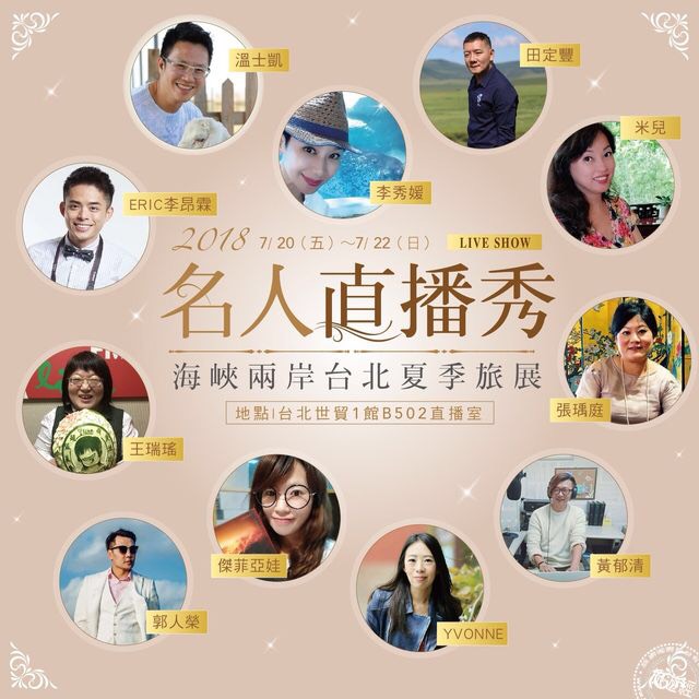 2018 海峽兩岸台北夏季旅展除了帶來大陸各省市自治區最新旅遊資訊和產品,更精心安排多場精彩的表演節目、旅遊推介會,以及今年首度登場的「名人直播秀」!
