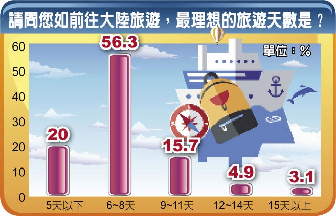 請問您如前往大陸旅遊,最理想的旅遊天數是?