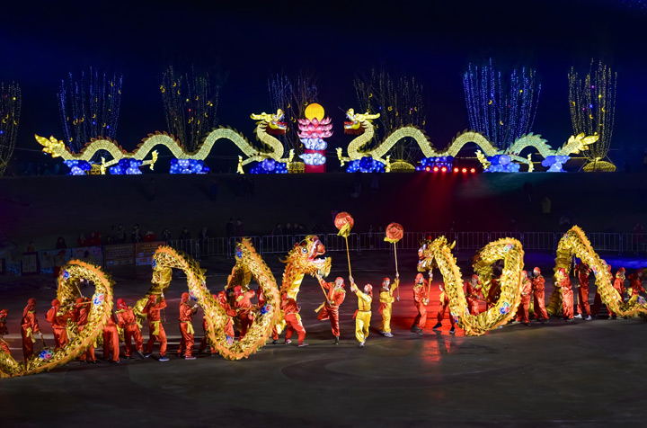 河南省濟源市的元宵節慶,彩色大龍以精神抖擻、氣宇軒昂的精神,爲人們帶來節日的喜慶。