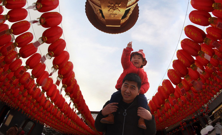 春節臨近,各處都掛起烘托節日氣氛的飾物,帶福字的大紅燈籠更讓人們感受到濃濃的年味。