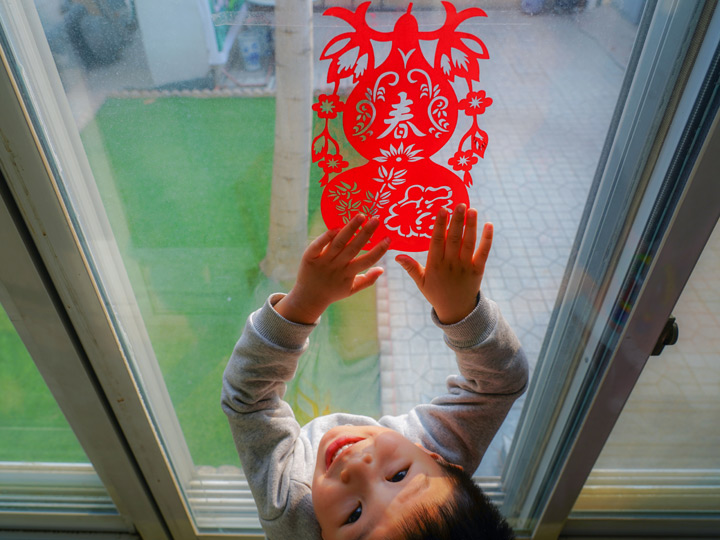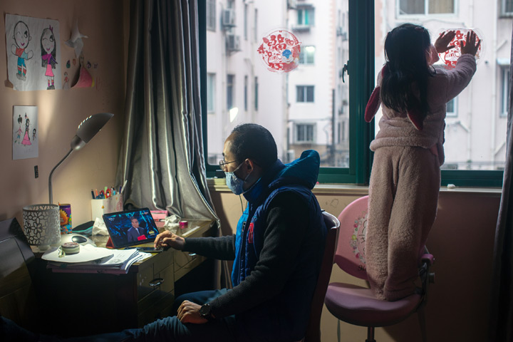 受新冠疫情影響,室外活動受限,更多的人選擇在家中過節。居民貼窗花、看視頻,在家享受溫馨時刻。