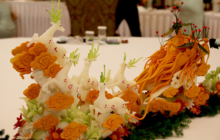 吉菜是中華美食地圖上一個獨特的存在,食材簡單,烹飪方法多樣。徐吉生對吉菜進行藝術化的處理,將吉林的自然美景和風土人情以食雕的方式展現在餐桌上,頗具創新。