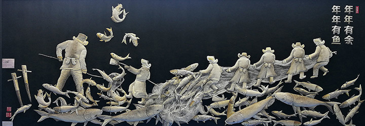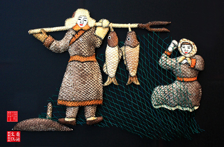 查干湖魚皮畫始於遼金時代,其用料獨特,主要取自於胖頭魚、鯉魚、黑魚等的魚皮。徐毳是查干湖魚皮畫製作技藝的傳承人,她的作品讓古老的漁獵文化得以更廣泛的傳播。