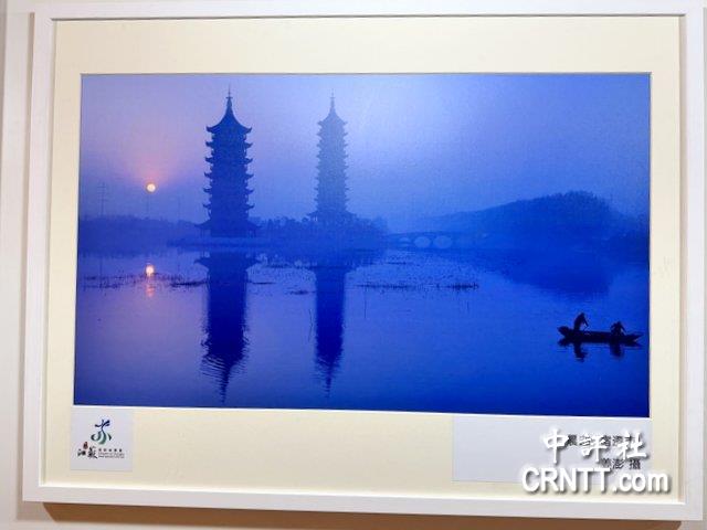 海旅會臺北辦事處也在臺北分會場外布置江南水鄉攝影展覽,讓與會民衆更能看見江南的湖光山色。