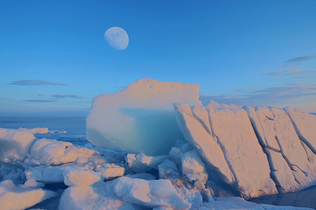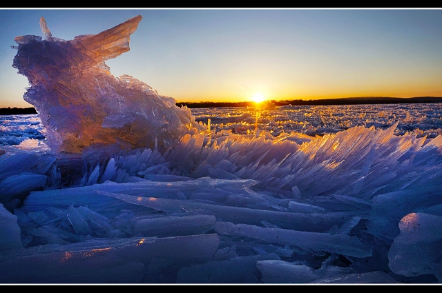 《冰湖映月》(興凱湖冬季冰排) 攝影:孫允革