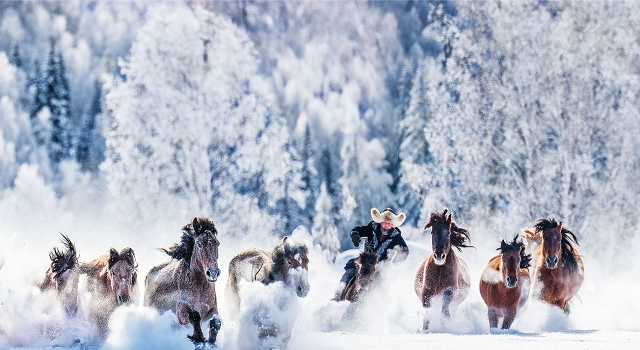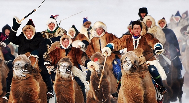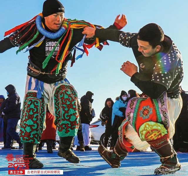 滑雪場上,滑雪愛好者們勇敢追逐風的速度;“輕裝上陣”的冬泳愛好者,不懼與零度冰水的親密擁抱;在雪中角力,別有一番情趣,馬拉扒犁、姑娘追、賽馬,人們在冰天雪地的競技中,你追我趕,熱火朝天。