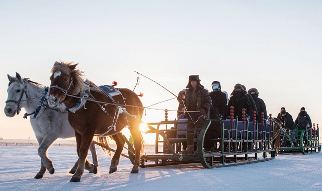 暖陽歸家-呼倫貝爾市乘坐馬拉雪橇的人們