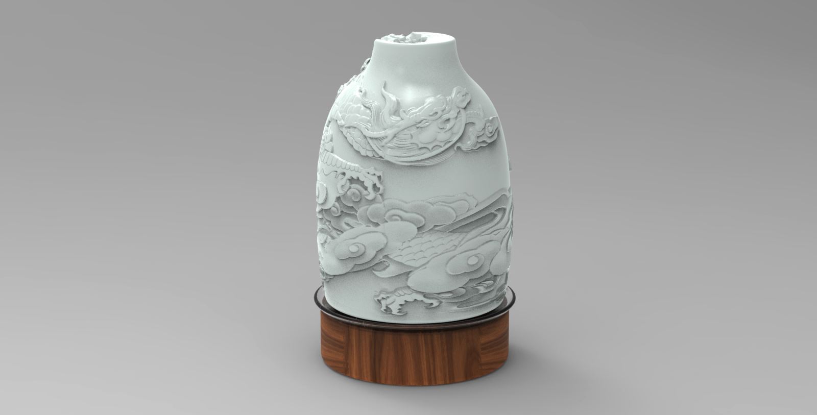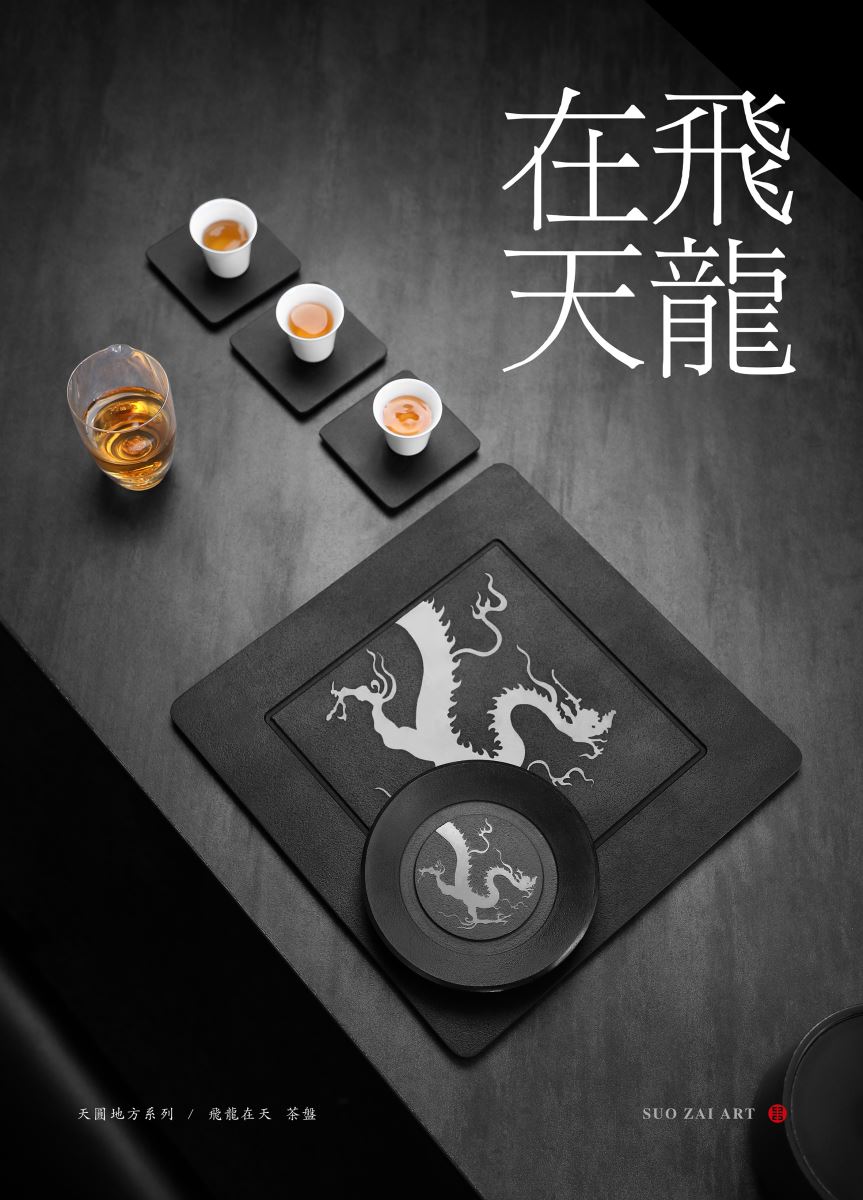 整體龍紋採用元代霽蘭龍紋紋飾,以一種自由奔放的飛翔之態,啟開龍年飛龍在天之勢,傳統的東方元素,以幾何形體為構造,結合傳統石雕技藝。在傳統中不拘泥固化,在創新中不失傳承,打造符合現代美學的東方器具。