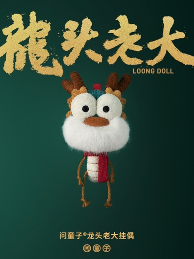 甲木為青,辰為龍,2024甲辰青龍年,問童子以“龍頭老大”為主題,通過大頭小身的創意設計,呈現兼具東方氣度與時代新意的龍頭老大系列玩偶,傳達對新年的美好祝願與希冀。