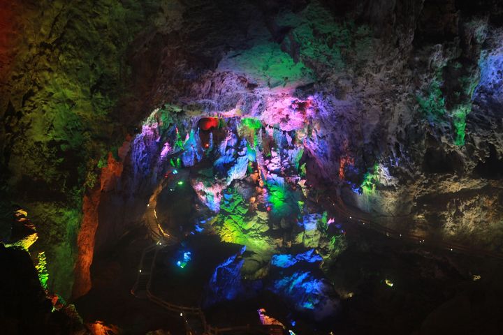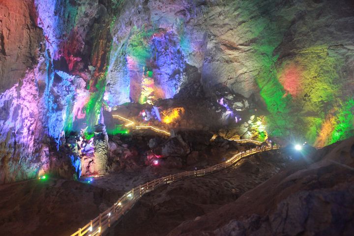 位於廣西巴馬瑤族自治縣甲篆鄉烈屯西北面的漠齋山下,別名龍虎洞。因洞內燕子棲集,蝙蝠掠飛,又名百鳥洞,這裡有石鷹、石柱、石幔、石觀音菩薩等各種姿態的石頭,石台的周圍有仙女梳妝、海螺石,石螺對面有石桌、石缸和石松果等。