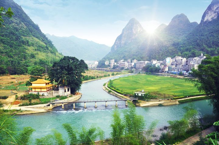 巴馬長壽村是桂北山區中一個神奇而美麗的地方,長壽村背倚青山,盤陽河繞村而過,走過一座石拱橋一條小路即可進村,景色優美,週邊更有多個魅力景點。