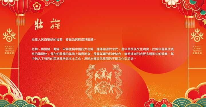 壯族自稱是蛇的後裔,壯錦、雲錦、蜀錦、宋錦是中國大陸四大名錦,也是中華民族文化瑰寶。其中,壯錦最具代表性的蟒龍紋,就是從蛇圖騰基礎上演變而來,龍、蟒形象結。