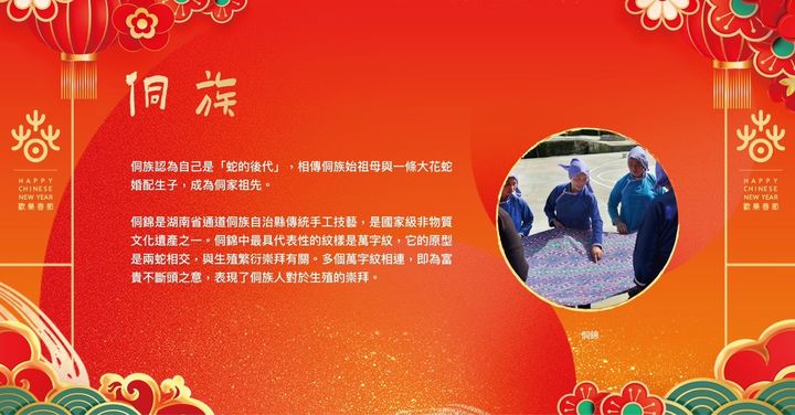 侗族人認為自己是蛇的後代,在湖南省通道侗族自治縣的非遺技藝中,最具代表性的紋樣是萬字紋,原型來自於兩蛇相交,與生殖繁衍崇拜有關。