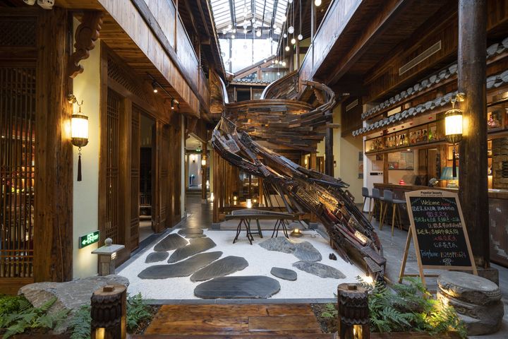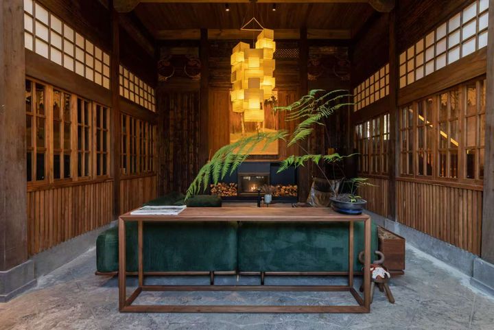 以古代徽商最具代表性的四大行業茶、鹽、木、當為靈感,同時結合徽州人的生活文化「火」,進行提取設計,才有了如今細膩精巧、內秀不露的黃山屯溪老街還淳度假民宿。