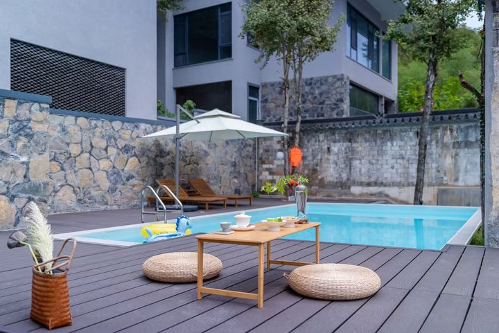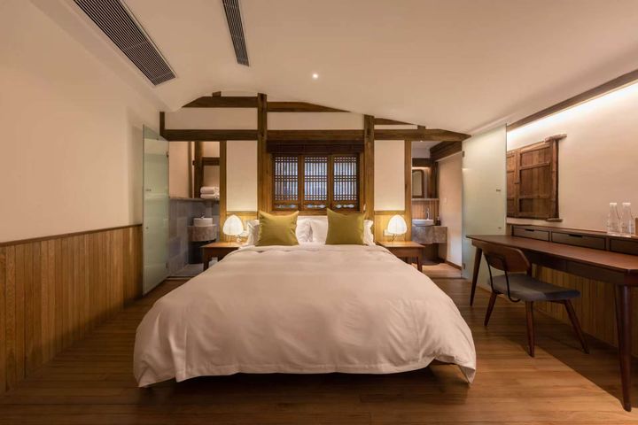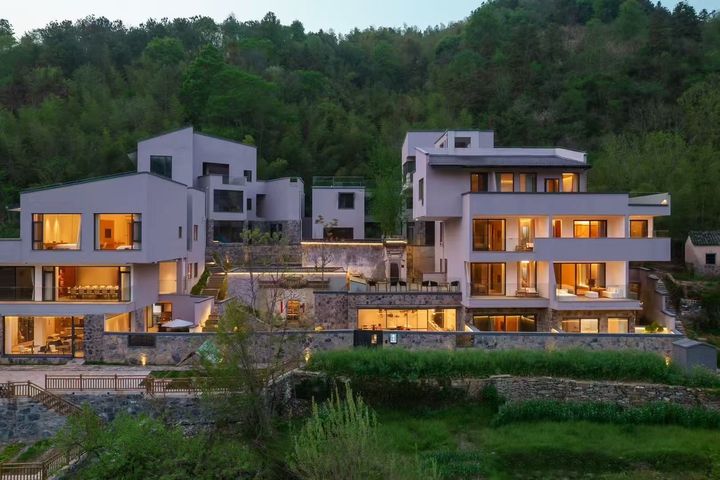 選址於九華山天台禪寺後山,以徽派建築為底色,結合新中式設計,大量使用原木、石材等自然材料,打造簡約雅緻的山居美學。