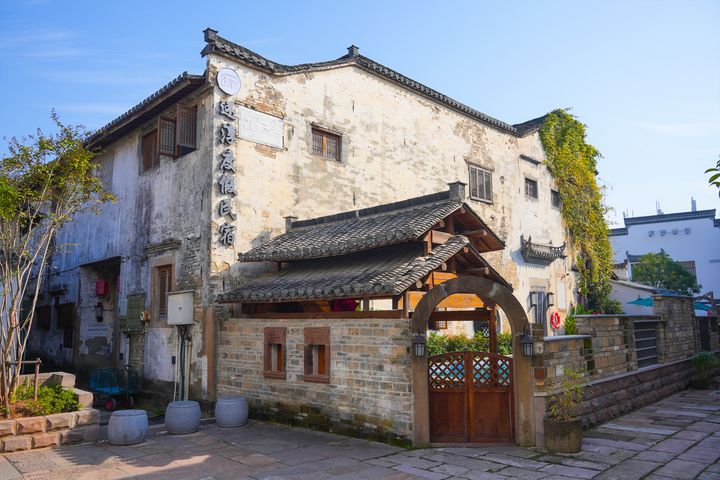 「還淳度假」民宿坐落在新安江畔,位於屯溪老街內,是由十三棟古民居、五大主題集合成一片擁有42間房的徽州儒商生活文化民宿集群,是黃山市首個徽商主題民宿。