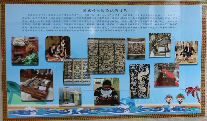 黎族傳統紡染織繡技藝已有3000多年歷史,其代表性產品被稱為“黎錦”,黎錦被譽為“中國大陸紡織史的活化石”。該技藝2009年被聯合國教科文組織列入“首批急需保護的非物質文化遺產名錄”,並於2024年轉入《人類非物質文化遺產代表作名錄》。