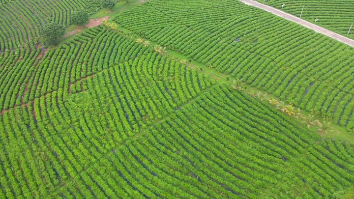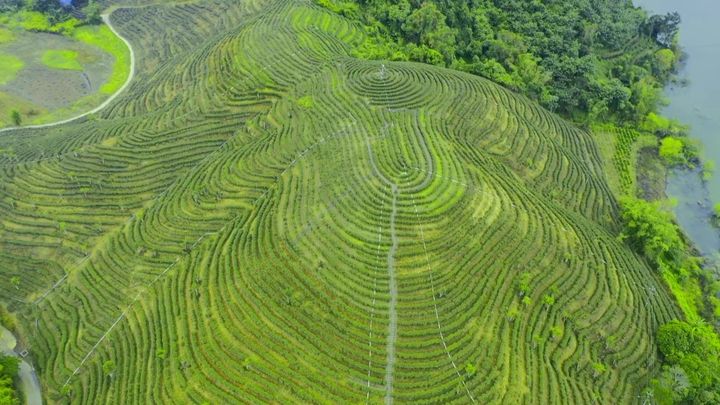 水滿鄉椰仙有機茶園又名指紋茶園,從高空俯瞰,茶園層層疊疊,線條優美,宛如印在大地上的綠色指紋。