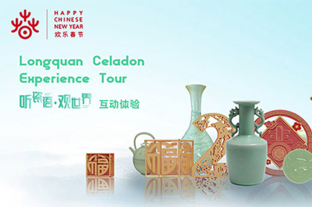“聽瓷語 觀世界”互動體驗通過展示唯一入選世界“非遺”技藝的龍泉青瓷,在“歡樂春節”的氣氛中,以全新技術營造“中華傳統文化”與全球民眾“雲端”交流互鑒,引導觀眾“親臨”龍泉、親身感受傳承、品味青瓷、走近大師、見證千年窯火。借助全三維場景交互,身臨其境探訪龍泉青瓷從幽林深山中“泥土”到璀璨瑰寶的轉化,感受青瓷文化驚豔世界的千年時光。
