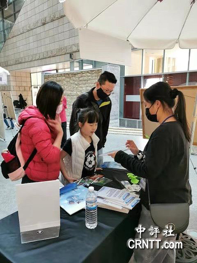 海旅會宣傳2022北京冬奧,民眾索取資訊。(中評社)