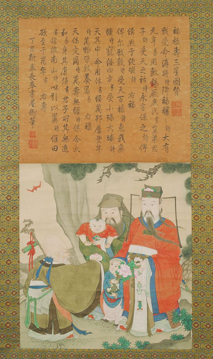 6. 清人畫三星圖弘曆書贊合軸