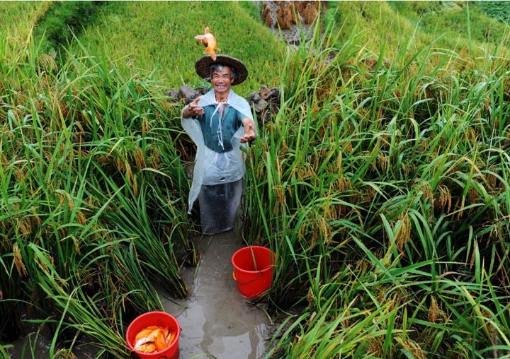 青田稻魚共生系統是首批全球重要農業文化遺產,該系統以稻養魚,以魚促稻,充分利用了各種自然資源,是種養有機結合生產模式的典範。