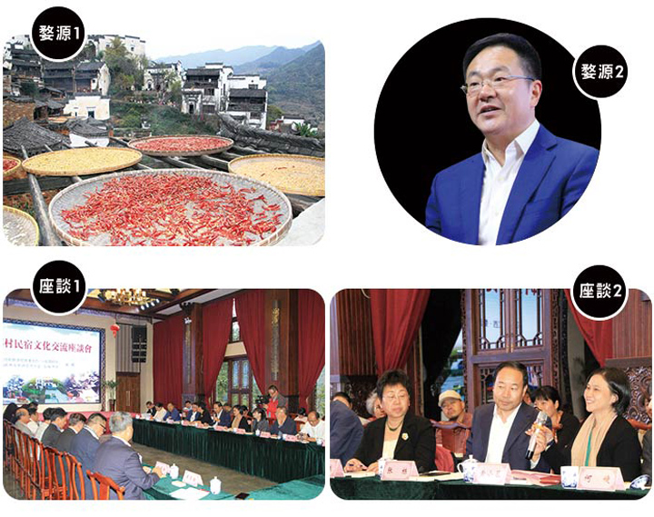 【上圖】厚塘莊園是婺源著名的民宿。【中圖】在婺源篁嶺舉行兩岸鄉村民宿文化座談合影。