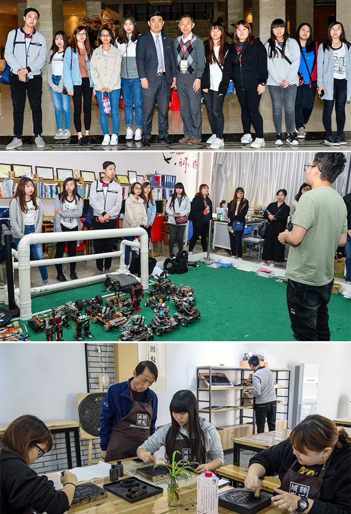 【中圖】參訪北方民族大學創新創業中心。【下圖】西夏文木活字印刷體驗。
