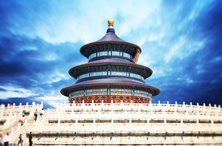 天壇是世界上最大的祭天建築群,入選“世界文化遺産”名錄。原是明清兩代皇帝祭祀皇天上帝的場所,經過不斷的改擴建,至清乾隆年間最終建成。天壇包括圜丘和祈穀二壇,圍牆分內外兩層。北圍牆爲弧圓形,南圍牆與東西牆成直角相交,爲方形。這種南方北圓的建築格局,通稱“天地墻”,象徵古代“天圓地方”之說。