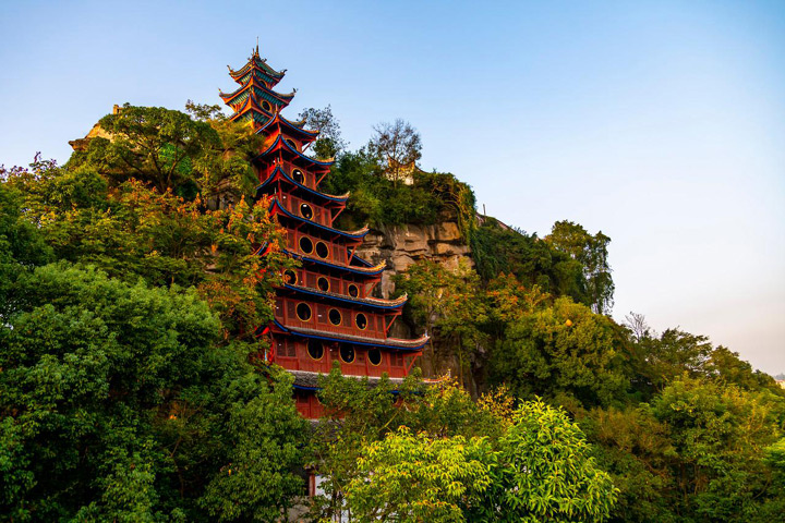石寶寨,是國家級文物保護單位,國家4A級旅游景區。石寶寨位於重慶忠縣境內長江北岸邊,故又被稱爲"江上明珠"。距忠縣城45公里,此處臨江有一俯高十多丈,陡壁孤峰拔起的巨石,相傳爲女媧補天所遺的一尊五彩石,故稱"石寶"。此石形如玉印,又名"玉印山"。明末譚宏起義,自稱"武陵王",據此爲寨,"石寶寨"名由此而來。