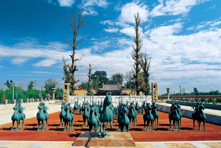 莫高窟俗稱千佛洞,坐落在河西走廊西端的敦煌。以精美的壁畫和塑像聞名於世的敦煌莫高窟,是20世紀最有價值的文化發現之一,被譽爲“東方盧浮宮”。它始建於十六國的前秦時期(351年~394年),歷經十六國、北朝、隋、唐、五代、西夏、元等朝代的興建,形成巨大的規模,現有洞窟735個,壁畫4.5萬平方公尺、泥質彩塑3415尊,是目前世界上現存規模最大、內容最豐富的佛教藝術聖地。