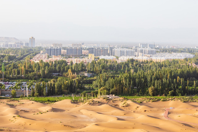 庫木塔格沙漠,距離吐魯番市區90公里,是世界上距離城市最近的沙漠。庫木塔格沙漠是一座流動型沙漠,有沙窩、沙山等,景色多樣壯觀,維吾爾語“庫木塔格”也是“沙山”的意思。該沙漠形成於漢代,是濃縮了世界各大沙漠典型景觀的博物館,更是詮釋古樓蘭王國消失的最後一片聖地。