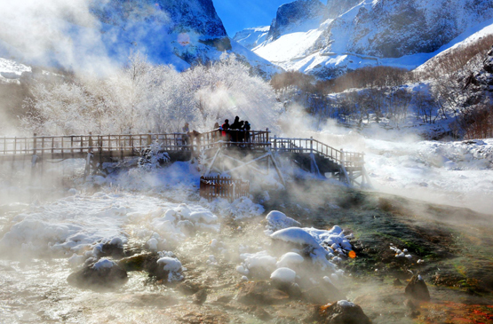 【長白溫泉群】位於長白瀑布北900米處。方圓1000多平方米的範圍內,分佈著數百個泉口。長白溫泉有‘神水’之稱,由於泉水含有硫化氫、鋅、鋰等多種微量元素,可促進血液迴圈,加速人體新陳代謝。